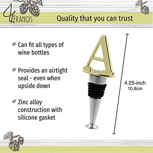 [Add Fun to Gatherings]: G. Francis Brass Cork Wine Bottle Stopper Saver has a 1.6 x 1-inch (4.1 x 2.5cm) top plate with 0.2 x 1.6-inch (0.5 x 4.1cm) monogrammed letter that allows you to stylishly personalize your wine bottle