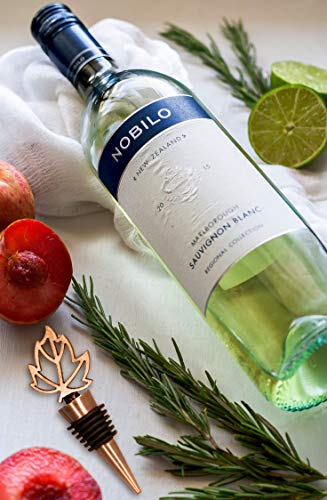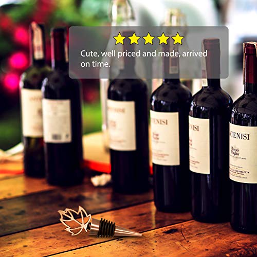 Decorative Wine Bottle Stopper: The bottle stopper has a sturdy metal core lined with a black rubber stopper rim topped with a stylishly tilted leaf silhouette; this autumn leaf bottle stopper is beautiful and functional!