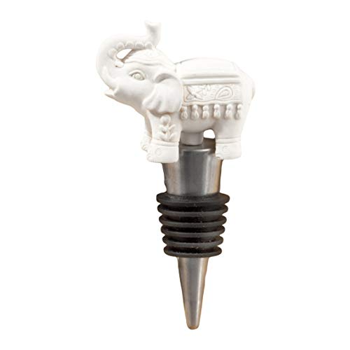 Good Luck Elephant Wine Bottle Stopper: Crafted in durable, pewter-finish poly resin, the majestic elephant charm has his trunk up-swung for good luck. The elephant has sculpted Asian/Indian-inspired details including a festive headdress and blanket