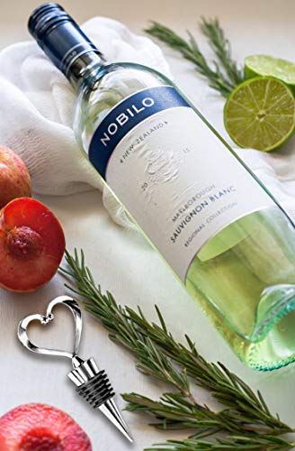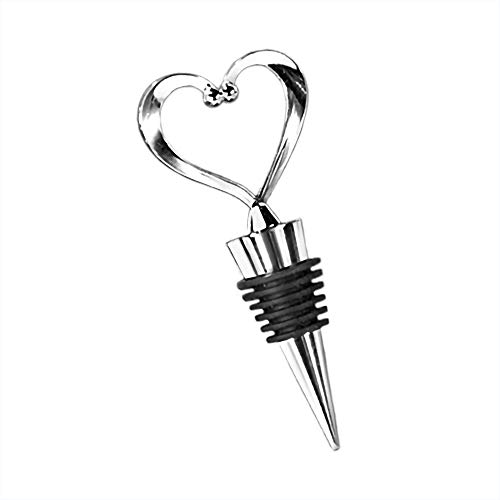 Wine Stopper Wedding Favor: Modern and practical, these sturdy stoppers feature a perky molded chrome heart shape on top of a chrome base wrapped with a thin black liner for a snug fit.