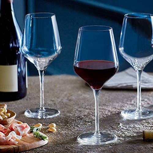 The tall pulled stem creates a seamless transition up to the angular bowl and thin rim. The bowl’s unique shape adds a modern twist and allows the wine to breathe and mellows tannins. Perfect for sipping and swirling red and white wines, these versatile glasses can also be used for serving cocktails, chilled water and more.